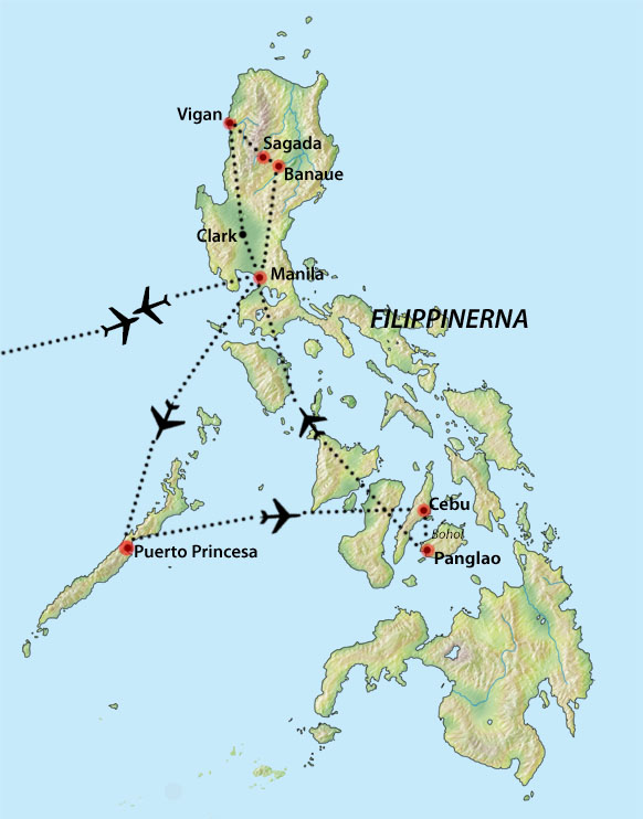 Filippinerna består av fler än sjutusen öar. Vi klarar inte riktigt av att besöka alla. Men de sex öar vi hinner med ger en god bild av landets varierande kultur och historia.